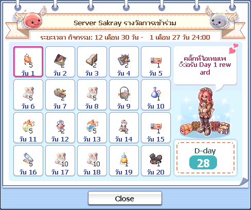 ผู้เล่นสามารถเข้าร่วมกิจกรรมได้ทุกวัน เพียงแค่ผู้เล่น Login และกดรับไอเทมจากหน้ากิจกรรมได้วันละ 1 ครั้ง