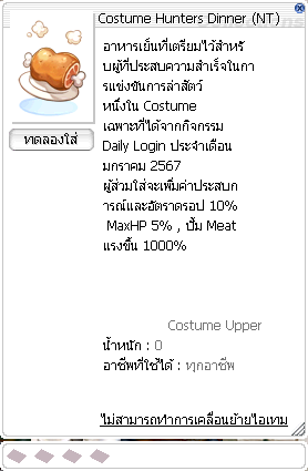 ตัวอย่างไอเทม Costume Hunters Dinner(NT)
