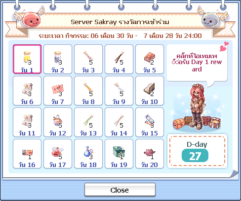 และของรางวัลจะถูกเข้า RodEx ของผู้เล่นทันที และหากเพื่อนๆรับไอเทมติดต่อกัน 7 วันแล้ว แล้วหยุดรับ ไป 2 วัน