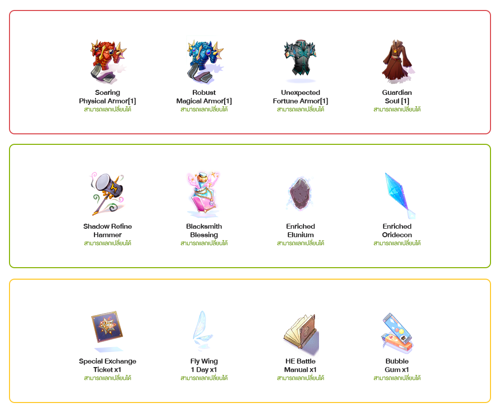 - ไอเทมโปรโมชั่นจะถูกส่งเข้าผ่านระบบ RodEx ทั้งหมด